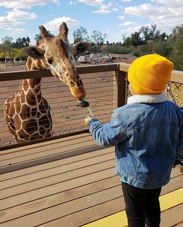 "I LOVE ANIMALS" one of my favorite places when i visit my grandpa is visit Phoenix zoo, is an amazing place, where you can feed the giraffes.
