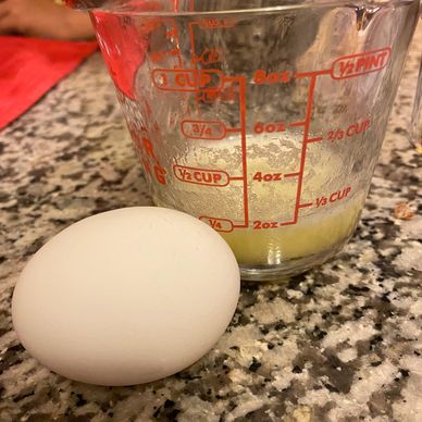MELT A CUBE OF BUTTER IN THE MICROWAVE AND HAVE AN EGG READY